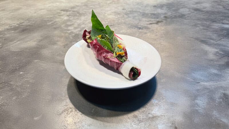 Ein roter Stern sei auch deshalb etwas ganz Besonderes, weil das Hawara kein typisches Michelin-Konzept verfolge, sondern seinen eigenen Weg gehe, sagen die beiden. Zu diesem Weg gehört beispielsweise ein eigener Garten in Freiburg-St. Georgen, wo Gärtner Sebastian Wolf nach einem ausgeklügelten Anbauplan Gemüse, Kräuter, Gewürze und Blumen für die Floristik anbaut. Im Mai, wenn die Jungpflanzen groß genug sind, kommt das zwölfköpfige Restaurantteam zum Pflanzen. „In diesem Jahr ist unser Garten noch wichtiger für uns geworden. Wir haben den Anbau vergrößert, freuen uns, dass wir schon unseren eigenen Szechuanpfeffer ernten können und unser eigenes Wasabi“, sagt Yannik Spielmann. Zweimal die Woche geht es zum Ernten in den Garten. Und von dem, was wächst, lassen sich die beiden inspirieren, aktuell von den ersten Zucchini und Auberginen.
