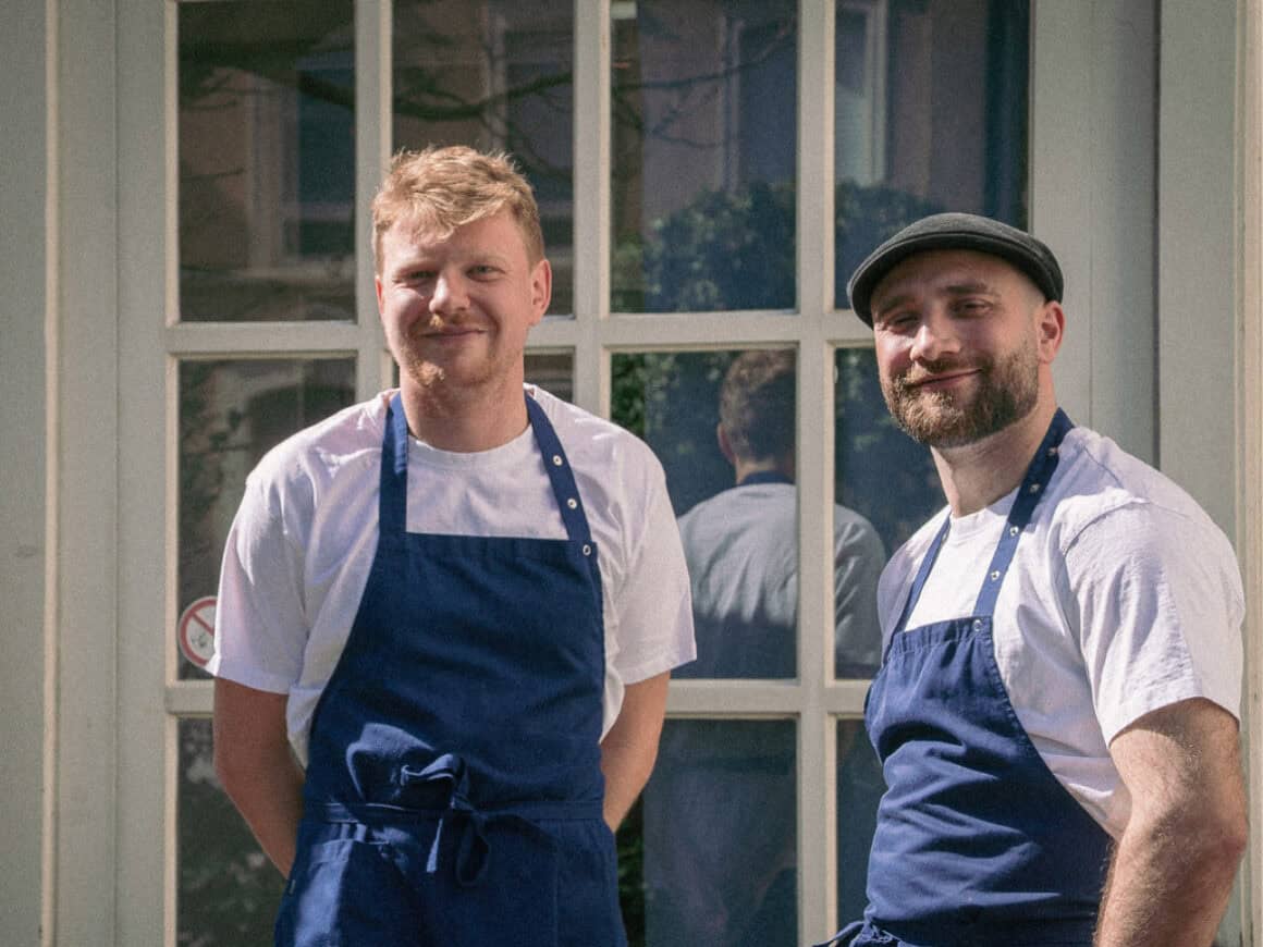 Die beiden 31-jährigen Spitzenköche, die seit Kindertagen befreundet sind, haben viel Zeit in Sterneküchen verbracht, angefangen von der Ausbildung im Raben in Horben, dessen Inhaber Steffen Disch im Frühjahr überraschend gestorben ist. „Er wäre so stolz auf uns gewesen“, sagt Nico Heuer. Nach der Ausbildung ging Spielmann nach Südafrika, war kurz bei Franz Keller am Kaiserstuhl und folgte dann Nico Heuer nach Wien, wo der auf Sterneniveau kochte. Nach einer weiteren Station im Drei-Sterne-Restaurant Frantzén in Stockholm starteten die Freunde 2020 in Freiburg in die Selbstständigkeit. Zunächst mit Popup-Restaurants, gut ein Jahr im Vorderhaus der Fabrik in der Habsburgerstraße und seit vergangenem Sommer eben im Klösterle.
